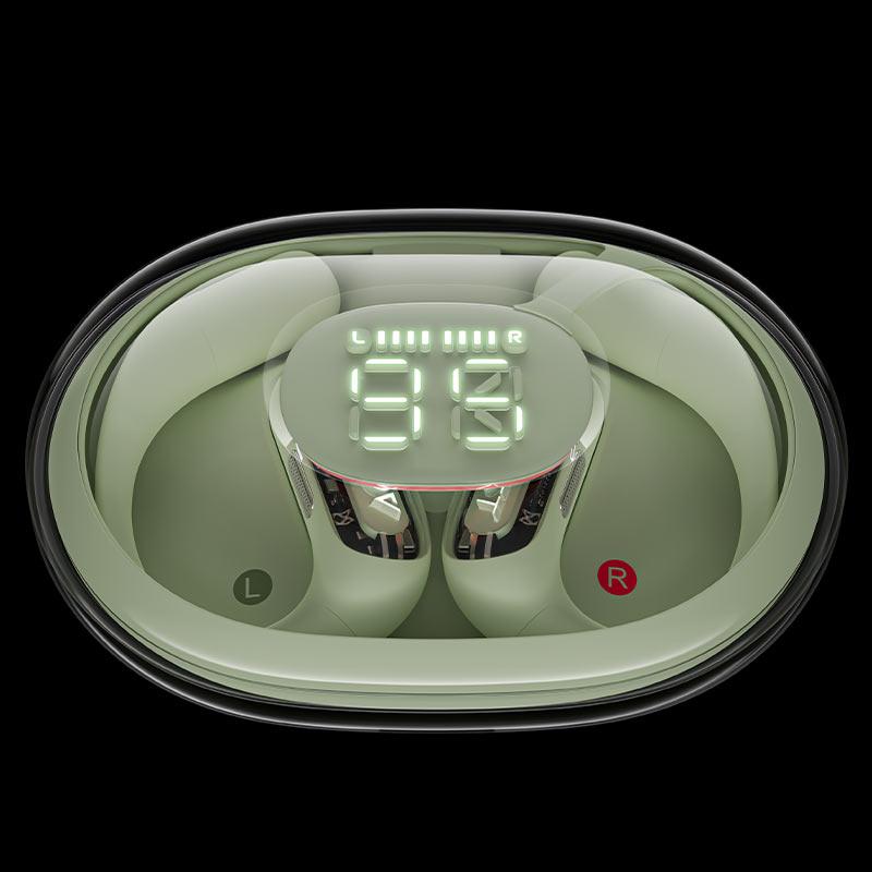 Tai nghe nhẹ như không (7.8 g), móc titan siêu mỏng, rất thoải mái và chắc chắn, phù hợp đeo với kính hoặc mũ. Hộp sạc trong suốt tích hợp LED hiển thị pin tạo cảm giác công nghệ hiện đại. Đèn LED “breathing” giúp người dùng an toàn khi chạy đêm.